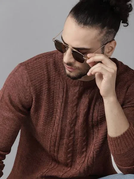 The Roadster Lifestyle Co Men’s Solid Cable Knit Pullover